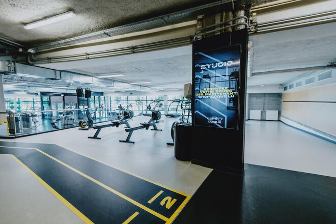 Notre salle de gym Studio vous permet de vous entraîner en bénéficiant d'équipements haut de gamme pour tous niveaux.